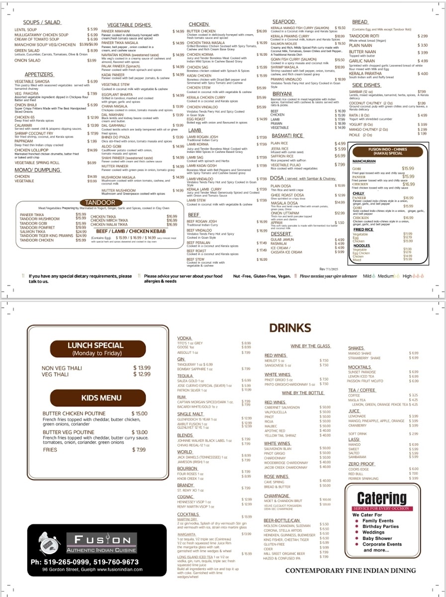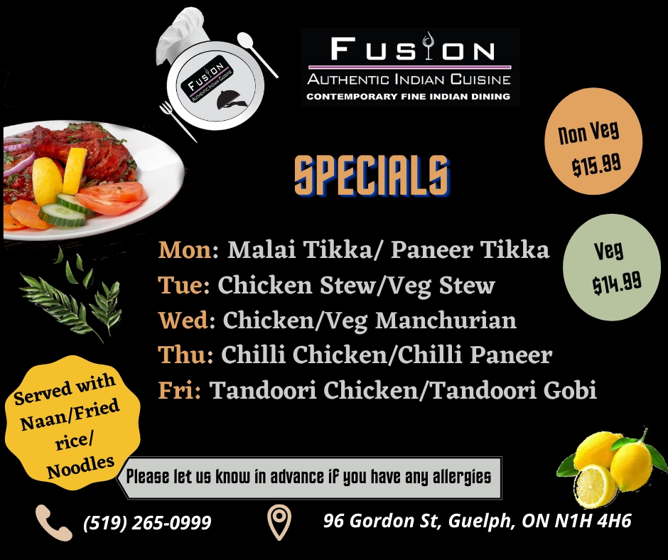 Welcome to Fusion Authentic Indian Cuisine, a culinary gem nestled in Guelph, Canada, known for its vibrant blend of traditional flavors and modern twists. Their menu features an array of dishes that celebrate the rich diversity of Indian cuisine, from the fragrant Kerala Chicken Biryani to the expertly spiced Tandoori Chicken and Chicken Mandhi. Each dish is crafted to perfection, ensuring juicy textures and aromatic spices that transport you straight to India.